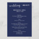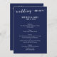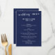Sencillas tarjetas de menú de boda azul marino con texto de personalizable
