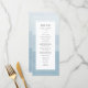 Menú Boda Blue Modern. Una bonita y elegante carta de boda azul polvoriento con un fondo de color marrón y un borde blanco. La parte posterior de la invitación incluye el mismo fondo de color azul acuático. Buscar elementos coincidentes en la colección de Bodas de color azul turbio.