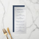 Elegante carta de menú azul marino y boda plateado con un moderno tipo de letra de guión. Elementos coincidentes disponibles.