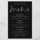 Menú Boda blanco negro con guión elegante de presupuesto. Un precio económico de 5,5" x 8,5", en una elegante stock de 110 lb LINEN - para un ambiente de lujo a gran valor, es perfecto para menús, así como invitaciones y programas, etc. Esta alternativa de tamaño de presupuesto también está disponible en otras opciones de papel. El material de la tarjeta SEMI-GLOSS de 110 lb es aproximadamente del mismo grosor que una postal, por lo que también funciona bien para las invitaciones. El papel FELT de 100 libras es de color buff, NO blanco, por lo que añade un toque rústico. El material de papel MATTE 80lb es blanco brillante, para impresión crujiente, ideal para menús y programas, mientras que el papel SATIN de 80 libras es delgado y liviano, ideal para gabinetes. Un guión elegante con barras para el menú de cabecera y un borde purpurina falso en la parte superior de ambos lados en oro rosa. Personaliza fácilmente el resto del texto a tus propios detalles, que incluye alternativas para tus opciones vegetarianas o veganas. Un diseño tipográfico elegante en negro clásico con tipografía blanca y un guión de conjunto elegante para el menú de cabecera. Personaliza fácilmente el resto del texto a tus propios detalles, que incluyen espacio para tus opciones veganas o vegetarianas. También puede cambiar estilos de texto y colores, así como los colores de fondo a través de la opción personalizar adicional si lo desea.