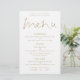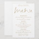 Menú Boda blanco negro con guión elegante de presupuesto. Un precio económico de 5,5" x 8,5", Un diseño tipográfico elegante en oro y blanco, con un guión elegante para el menú de cabecera. Personaliza fácilmente el resto del texto a tus propios detalles, que incluye alternativas para tus opciones vegetarianas o veganas. También puede cambiar estilos de texto y colores, así como los colores de fondo a través de la opción personalizar adicional si lo desea.