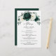 Elegante vegetación verde esmeralda y menú boda botánico con flores de marfil blanco con rosas blancas y elegantes hojas de eucalipto de color verde agua. Comuníquese conmigo para obtener ayuda sobre la personalización o si necesita cualquier otro producto con este diseño.