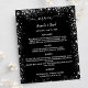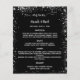 Tenga en cuenta que este menú está en papel de volante y es muy delgado. Para menús más gruesos (mismo diseño) visite nuestra tienda. Un menú boda elegante y glamuroso. Un fondo negro, decorado con finos purpurinas plateados, chispas. Texto blanco. Personalice y agregue su nombre, fechas y el menú. Puede añadir más texto, fotos en la parte posterior.