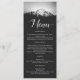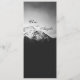 Boda blanco y negro bajo las montañas. Fotografía paisajística de una montaña cubierta de nieve con oscuridad abajo y cielo blanco nublado arriba. Los nombres de la pareja están en letra negra encima de la montaña en el cielo y todos los detalles están en letra blanca debajo de la montaña. Personalizable completo y productos bodas personalizables.