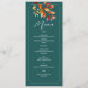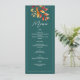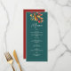 Celebre su día especial con este menú de boda otoñal rústico que presenta hojas de acuarela en tonos cálidos de otoño y un fondo verde teal profundo. Diseñado con un guión romántico y una disposición minimalista, esta tarjeta elegante añade un toque acogedor y personalizado a sus mesas de recepción, perfecto para bodas rústicas, boho o al aire libre en la temporada de otoño.