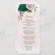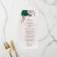 Menú boda botánico de flores rosadas verdes esmeraldas