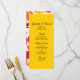 Personalizar el menú Boda natural de las hojas de otoño brillantes con los detalles de la comida que se servirán en el almuerzo de la ducha de novias de septiembre, octubre o noviembre otoño, la cena de la recepción matrimonial o el brunch posterior al boda añadiendo la ensalada o el primer curso, el entrante o segundo y el postre o el tercer curso. Personalízalo con los nombres de la novia y el novio, la ubicación del lugar y la fecha del evento. Este personalizado menú boda otoñal incluye hojas de otoño rojas, naranjas y amarillas con un fondo blanco.