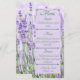 Añada los detalles de la comida perfecta para su día especial con este hermoso menú de inspiración natural con suaves flores de lavanda floreciendo en primavera.