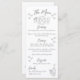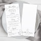 Menú Boda Gris y Blanco de inspiración europea. Esta encantadora carta boda presenta un diseño encantador inspirado en la estética italiana, francesa y europea. El ilustracion, a mano, adorna la parte superior, mientras que una botella de champán y una copa de cristal en el fondo se acentúan con corazones dispersos para un toque romántico y elegante. La parte frontal resalta los detalles del menú en una mezcla de escritura manuscrita y fuentes simples en gris suave, ofreciendo un ambiente caprichoso y refinado para su celebración. En la parte trasera, los nombres de la novia y del novio y la fecha del boda se muestran con los mismos tonos grises, lo que hace que sea un placer para los clientes. Personalizable completo, el diseño le permite adaptar el texto y la paleta de colores para complementar su tema boda. Ideal para recepciones de bodas, cenas de ensayo, duchas de novias o una sofisticada fiesta de compromiso, esta carta de menú aporta un elemento delicioso y personal a sus eventos especiales.
