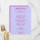 Un único menú retro de boda con un toque de color verde y moderno. Que presenta el diseño de la plantilla de moda del fondo del período veintage boho y el diseño de texto escrito a mano con magenta rojo. Perfecto y a juego con la suite.