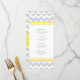 Elegante menú para la cena de bodas con elegante estampado retro de zigzags de limón amarillo limón, gris y blanco, personalizable con los detalles de la cena, disponible en una amplia gama de productos bodas a juego.