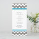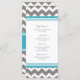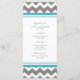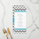 Elegante menú para la cena de bodas con elegante estampado retro de chevron azul verde azulado, gris y blanco, personalizable con los detalles de la cena, disponible en una amplia gama de productos bodas a juego.