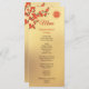 Flores rojas de cerezo y un símbolo rojo doble de felicidad en un fondo dorado. Con nombres de novias y novios personalizados, la fecha del boda y un texto de menú personalizado en un guión escrito a mano clásico. Al revés están las iniciales para cambiar. Al revés hay un texto chino tradicional.