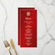 Esta moderna carta boda china cuenta con un símbolo de doble felicidad dorado sobre un fondo rojo brillante. Con nombres de novias y novios personalizados, la fecha del boda y un texto de menú personalizado en un guión moderno escrito a mano.