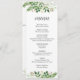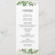 Si la temática de este restaurante es la vegetación rústica o bohemia, la carta boda es el complemento perfecto para las mesas. Este menú, con un formato largo y elegante, se sirve en cada plato individual y se puede añadir un mensaje de agradecimiento o de bienvenida a los clientes de la parte trasera.