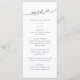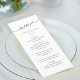 Menú de boda simple y moderno con "menú" de guión moderno en un ángel con tipografía serif clásica. Tus invitados amarán la apariencia minimalista en negro y blanco.