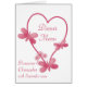 menú boda para la cena: diseño de corazón rosa y mariposas. Puede personalizar este menú boda de color rosa con los detalles de su boda. Si necesita ayuda para personalizar, póngase en contacto con nosotros a través del enlace de esta página. Corazón rosa y mariposas diseño menú boda personalizado para la cena