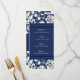 Elegante menú para la cena de bodas con elegantes tonos azul marino y damasco floral clásico crema de color blanco, personalizable con los detalles de la cena, disponible en una amplia gama de productos bodas a juego.