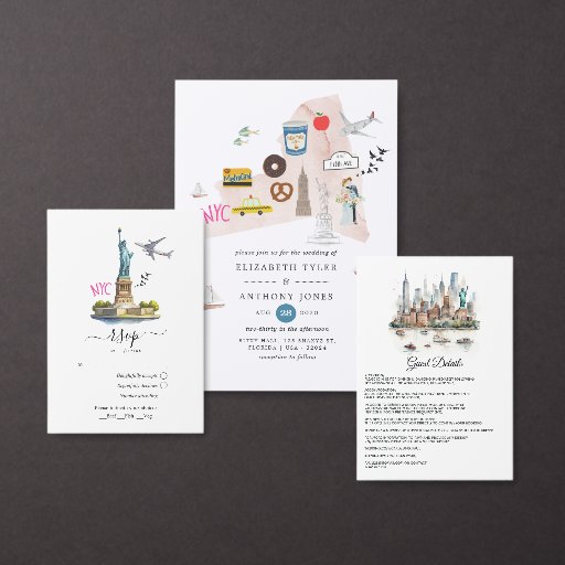 Menú Boda de acuarela de Nueva York