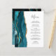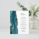 En el extremo izquierdo de este elegante y moderno menú boda se encuentra una verde azulada barra de acuarela azul bordeada por un falso purpurina de oro. El texto del personalizable combina el guión de escritura a mano gris carbón y fuentes de copperplate en un fondo blanco. El reverso presenta un diseño de agate verde azulado y dorado a juego.