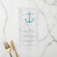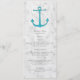 Perfecto para un boda de temática náutica, esta carta de menú rústico Boda con ancla turquesa sobre un fondo de mármol gris claro. Esta carta clásica y sencilla es fácil de personalizar con los detalles de su boda. Para obtener más opciones de personalización, haga clic en Personalizar.
