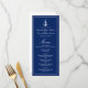 Personalizar este elegante y elegante y elegante menú de bodas náuticos monogramo. Diseño moderno y nítido con texto en blanco e imagen de anclaje en un fondo azul marino. Todos los elementos son flexibles y se pueden mover, cambiar de tamaño o quitar. Todos los demás productos de diseño coincidentes y se encuentran en esta colección:
