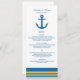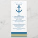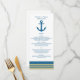 Elegante y clásico Tarjeta de menú Boda Nautical Anchor con un sencillo ancla de barco y una serie de rayas azul marino oscuro y dorado. Esta tarjeta de menú de boda con temática náutica se puede personalizar fácilmente con los detalles de su boda. Para obtener más opciones de personalización, haga clic en el botón Personalizar.