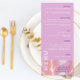 El menú Boda de arte abstracto rosado Pastel ofrece un toque perfecto de boda pastel moderno y moderno. El arte abstracto se caracteriza por una mezcla de colores coral, rosa y blanco, balanceada, no demasiado audaz ni luminosa que complementa la tipografía blanca y violeta. Con la tipografía moderna, se crea un nuevo estilo, aparte del boda tradicional o de un boda típico.