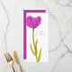 Hermoso tulipán morado de arte acuático. Personalizar con su propio menú de cuatro platos. Ideal para un evento o boda de flor de tulipanes de primavera o púrpura. Únicamente pintado en acuarela y diseñado por Sarah Trett para www.mylittleedenweddings.com