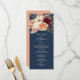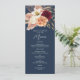 Eleva tus mesas de recepción con esta elegante tarjeta de menú de boda en burgundy y azul marino. Con rosas pintadas con acuarela en burgundy, melocotón y marfil con hierba de pampas y follaje sobre un fondo azul marino profundo, este diseño de menú es romántico y elegante. Perfecto para bodas de otoño o invierno, te permite mostrar tus platos de cena de una manera bellamente coordinada. Personaliza con nombres, fecha y detalles del menú. Invitaciones, tarjetas de RSVP, programas, tarjetas de detalles y letreros de bienvenida a juego están disponibles en nuestra colección para un conjunto de boda completo.