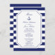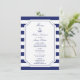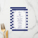 Perfecto para su boda náutico, este menú propone un ancla azul marino con cuerda y fondo rayado azul y blanco. Personalice los nombres de la novia y del novio, así como las opciones del menú.