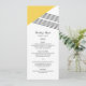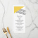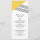 Carta de menú de Boda de rayas geométricas moderna y de moda con un triángulo amarillo y un acento de rayas finas. Esta sencilla y elegante tarjeta de menú está configurada para ser fácilmente personalizada con la información de su boda. Para obtener más opciones de personalización, haga clic en Personalizar.