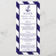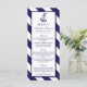 Estas tarjetas de menú son perfectas para las parejas que planeen una boda romántica junto al mar. El diseño presenta un caprichoso motivo de ancla azul marino sobre una marina náutica y un fondo de rayas blancas. El diseño sencillo puede ser personalizado para su evento especial y será el menú perfecto para cualquier fiesta con temática náutica, incluyendo duchas de novias, compromisos, duchas de bodas, fiestas de cumpleaños y mucho, mucho más.