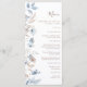 Disfrute de una magnífica celebración del amor y la naturaleza con nuestro menú de Bodas acuarelas rusticas de Boho. La carta, única y sorprendente, da un toque de moda boho con flores naturales de acuarela pintadas a mano en suaves tonos azules pálidos y polvorientos, acompañados de tanques de tierra. Nuestra plantilla fácil de personalizar le permite infundir su voz personal convirtiéndola realmente en la suya. Este bonito menú es perfecto para bodas románticas y elegantes en cualquier época del año. (Texto de color oscuro).