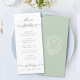 Elegante menú boda de borde floral verde sabio con un escudo floral y monogramas en la parte posterior. Para una personalización más avanzada de este diseño, haga clic en el BOTÓN HERRAMIENTA DE DISEÑO de arriba.