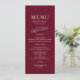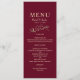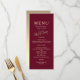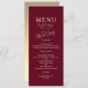 Elegante, moderno, minimalista, sencillo menú boda burdeos rojo con una única pareja de oro dibujada a mano adorando a los pájaros y un moderno guión de caligrafía.