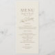 Elegante, moderno, minimalista, sencillo menú de boda de marfil dorado con pareja única de aves de amor dibujadas a mano y escritura caligráfica de moda.