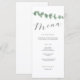 Este minimalista y elegante menú de bodas presenta una sencilla rama de eucaliptos con una tipografía caligráfica clásica. Un clásico diseño de menú boda para vestir las mesas con gusto y adecuarse a la temática boda a través de las ideas de decoración boda.