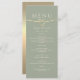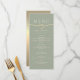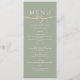 Sencillo, minimalista y moderno menú boda verde sabio con corazón de cuerda dorada.