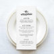 Menú Boda de cena simple y elegante