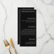 Presentamos nuestra colección de temas Bodas "Negro y Blanco": Elige el tema negro y blanco y celebra la riqueza de tu historia de amor en cada detalle. Se trata de una carta de menú de dos caras, en la que se sirven las opciones de cena y las bebidas, ¡simplemente personalizar para que se adapte a tu día especial!
