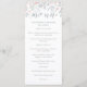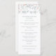 Este delicado menú botánico-boda se caracteriza por sus tonos de coral, melocotón, gris y azul, y sus hojas, flores y acentos.