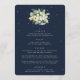 Un oscuro menú de bodas de invierno de cuatro platos de la marina, con un ramo/poste de nevadas pintadas a mano y eucalipto delante y una corona en la espalda. Todo el texto es completamente editable, y los puntos dispersos en la parte delantera y trasera se pueden borrar antes de pedir si lo prefiere. Por favor, vea esta colección en mi tienda para menús con arreglos florales alternativos, un número diferente de cursos y en diferentes tamaños, colores y formas. También hay elementos de coordinación disponibles.
