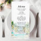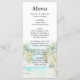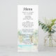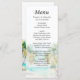 Este elegante y hermoso menú boda acuático incluye una playa, un cielo azul y palmeras. El texto combina guiones manuscritos y sans serif para un estilo elegante y moderno. Es perfecto para una boda de verano o destino tropical.