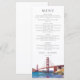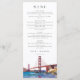 Estas elegantes cartas de menú de boda en acuarela del puente Golden Gate de San Francisco pueden ser personalizadas con su información en tipografía moderna. Diseñado por Thisisnotme©