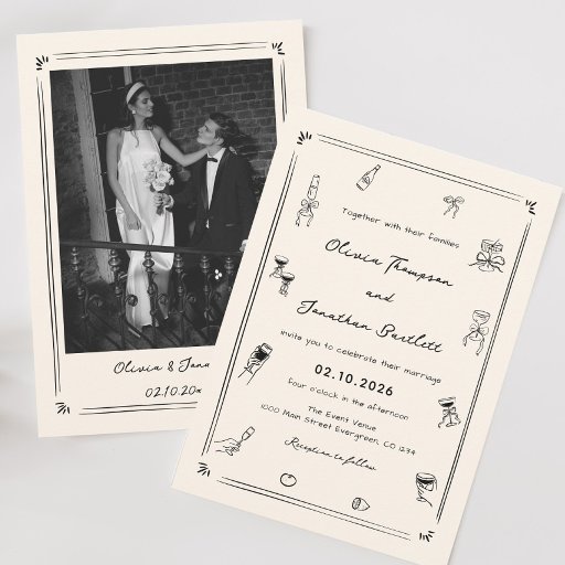Hand Drawn Black and White Old Money WeddingDiseñado por Lam Anh Ha