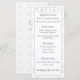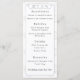 El diseño presenta un magnífico fondo de la imagen de encaje blanco. Un delicado florecimiento plateado realza cada rincón. Un elegante encabezamiento de un menú boda se muestra en un elegante tipo de letra nupcial. El formato adecuado para un menú boda se muestra a continuación en letra clara. Todo el texto es personalizable. El reverso presenta el mismo fondo del monograma de novia y novio. Gran diseño para el clásico tema de la novia "Old Money". Diseñado para coordinar con la Suite Boda Católica Vintage White Lace.