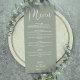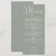 Este menú de boda de elegante escritura verde salvia se puede personalizar con todo su menú especial del día de la boda, nombres y fecha especial. Diseñado por Thisisnotme©