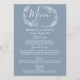 Presenta ilustraciones rústicos con guirnaldas florales y un guión elegante sobre un polvoriento fondo azul. Puede elegir su color de fondo favorito para crear un diseño único. Personalice la información del menú especial del día de la boda. Diseñado por Thisisnotme©