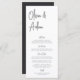 Menú Boda de escritura manuscrita moderna en blanco y n